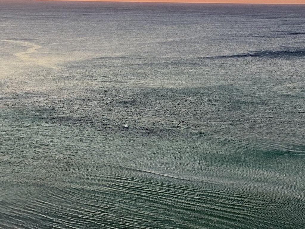 I look out and it is so calm I can see a pod of dolphins pursuing their morning feast, dipping above the water line so I can see their fin sticking out. Then the pelicans are nose diving in head first for their breakfast. As I watch these beautiful animals in their natural habitat the Holy Spirt begins to speak to me.